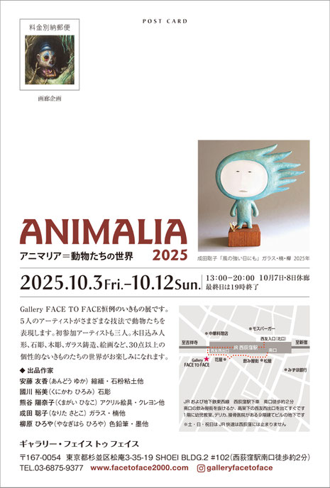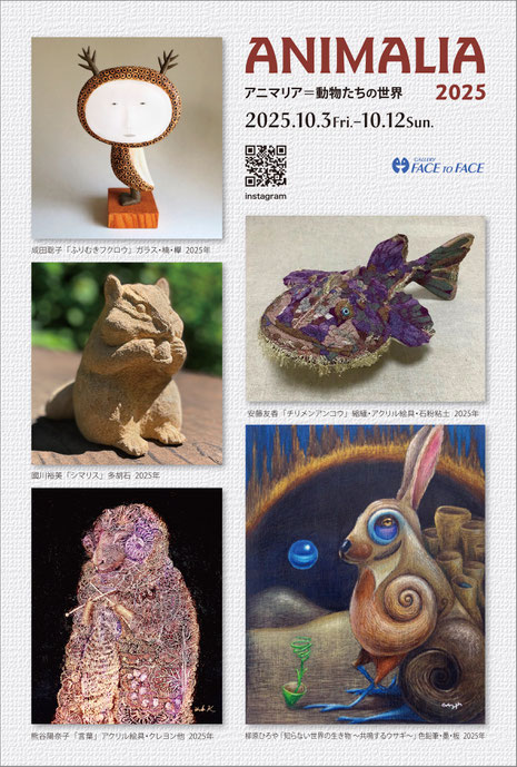 5人のアーティストがさまざまな技法で動物たちを表現します。初参加アーティストも三人。木目込み人形、石彫、木彫、ガラス鋳造、絵画など、30点以上の個性的ないきものたちの世界がお楽しみになれます。